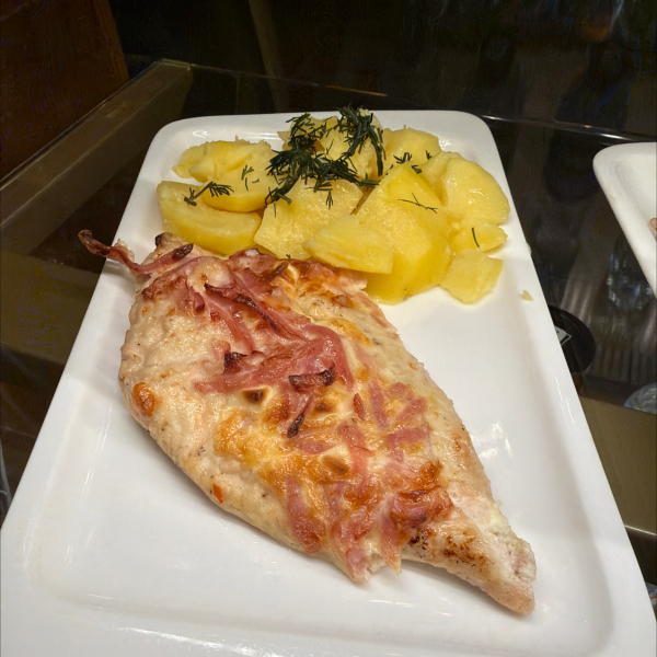 Куриное филе запеченное с ветчиной под сыром + ОТВАРНОЙ КАРТОФЕЛЬ